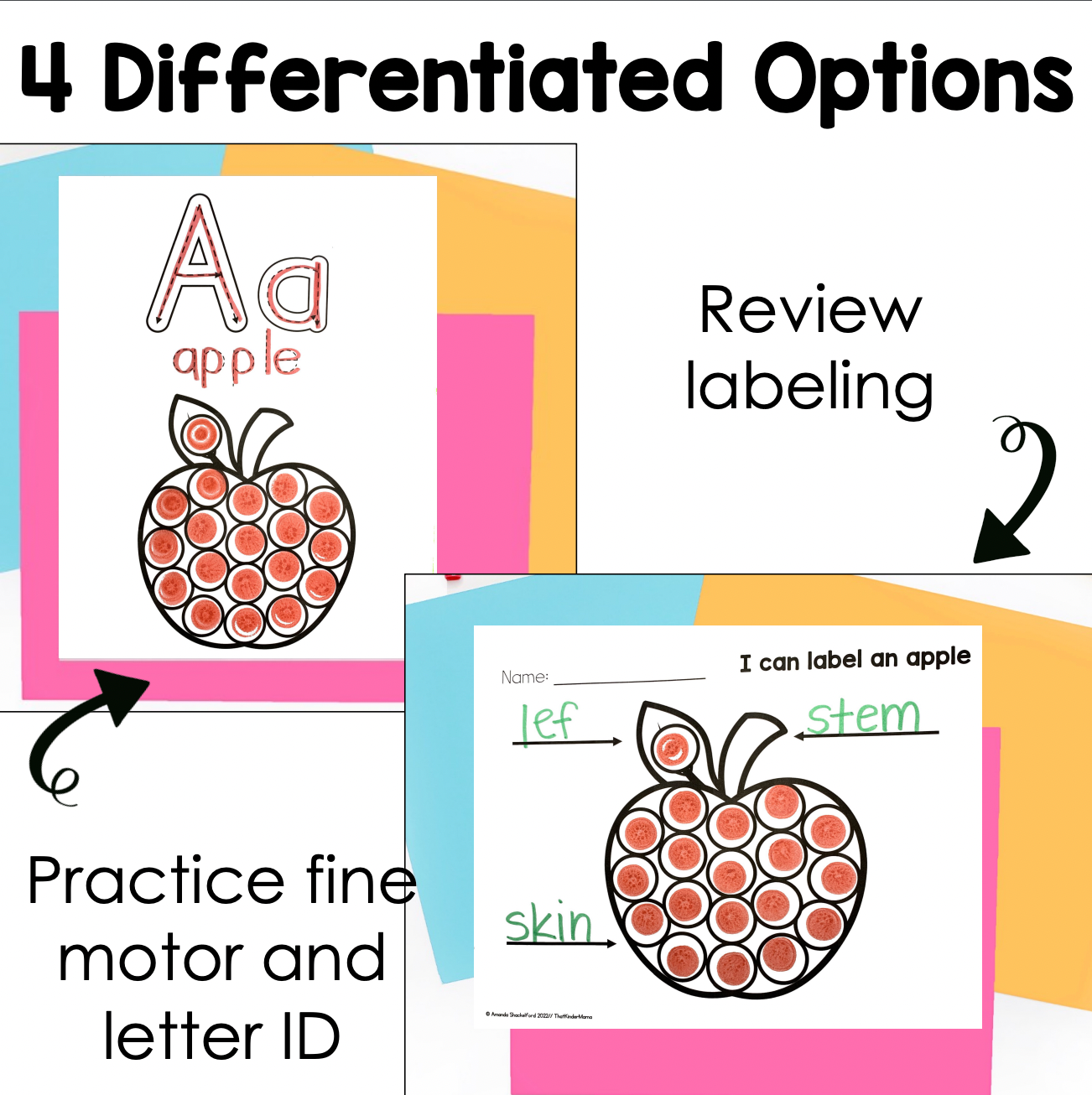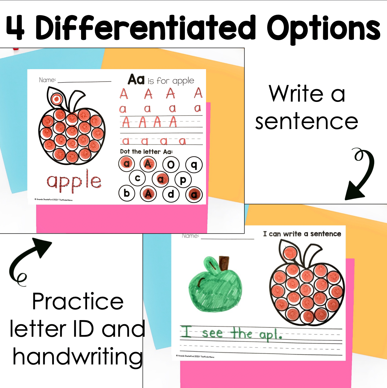 - 4 different activities (alphabet posters, letter ID and handwriting, labeling and sentence writing)