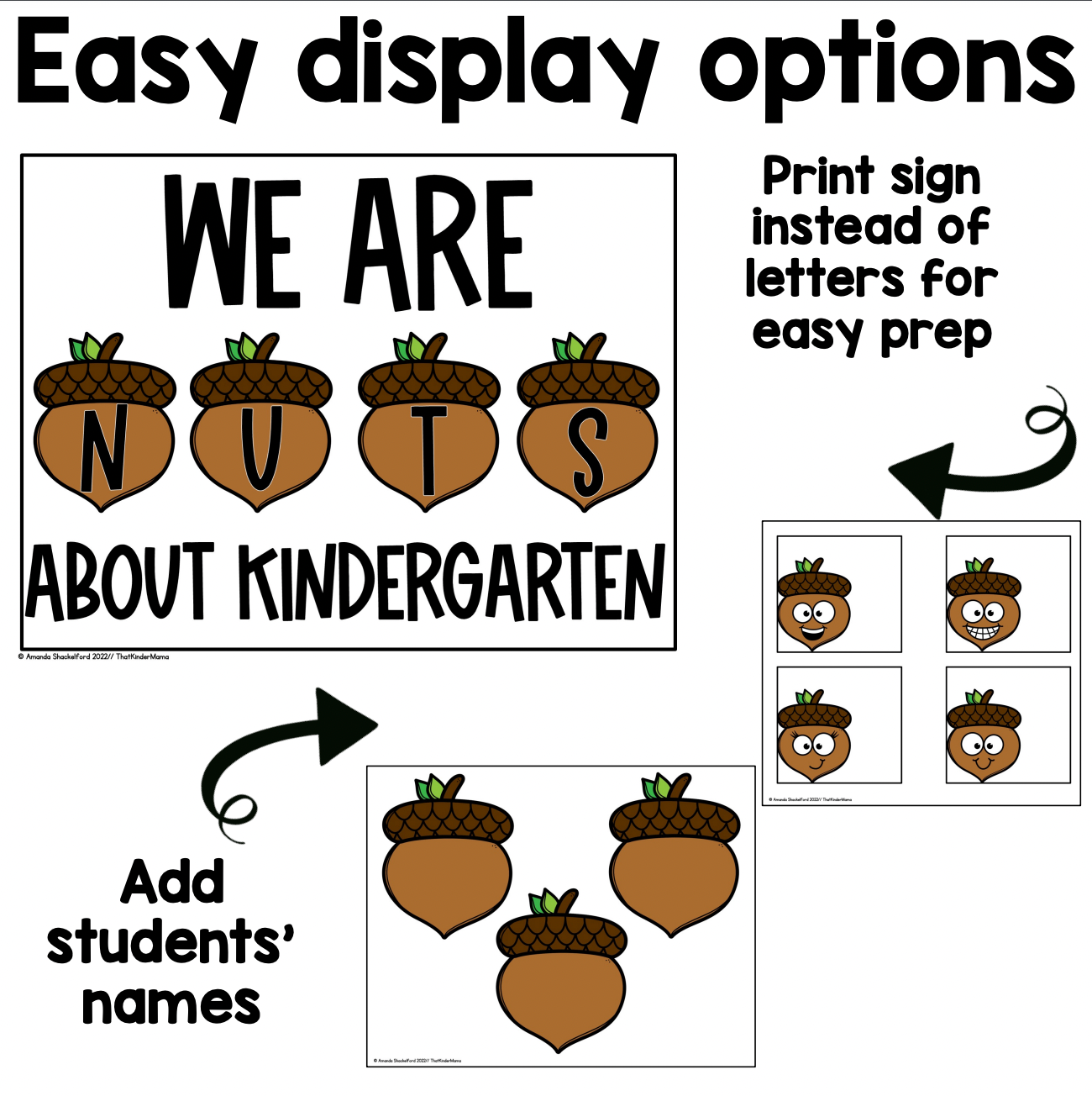 - No Prep Sign saying "We are nuts about kindergarten/first grade/etc"