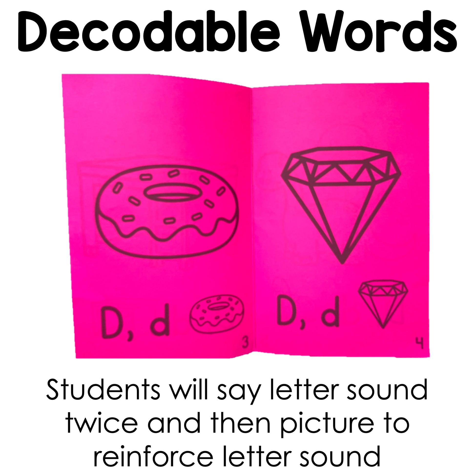 These are 32 Alphabet Books. Use these books in your kindergarten classroom to practice letter sounds before they start decoding two and three letter sounds.