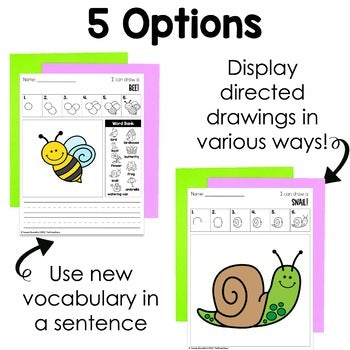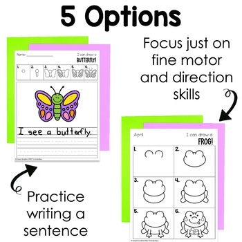 - Option Two: Students draw the directed drawing AND write a sentence (blank and handwriting lines available)