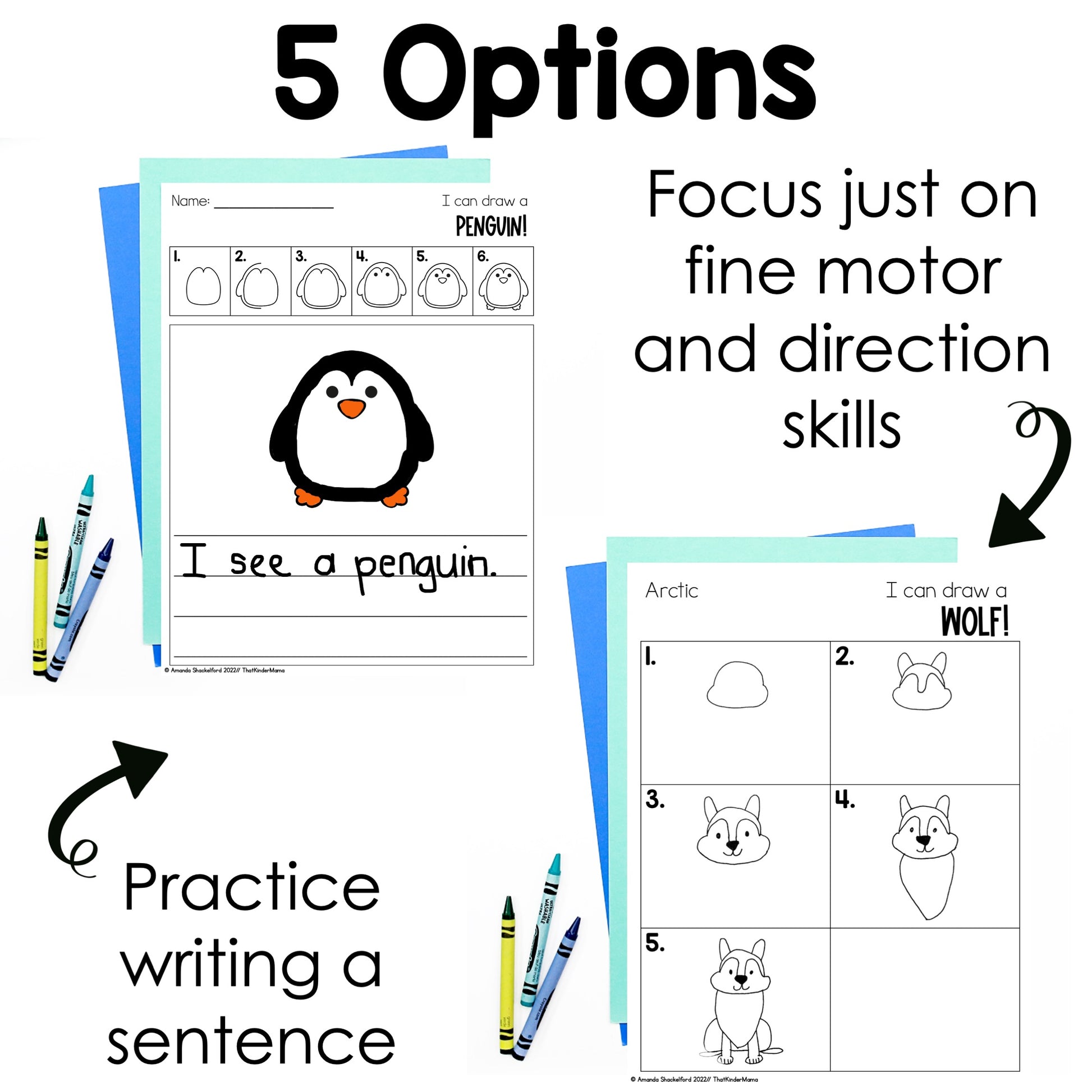 These are Arctic Animals Directed Drawings. Perfect for kindergarten, first or second grade students to continue gaining confidence in their drawing abilities while also practicing fine motor skills, following directions, sentence writing or building vocabulary. Add these directed drawings to your reading or craft centers to give your students hand on experiences.