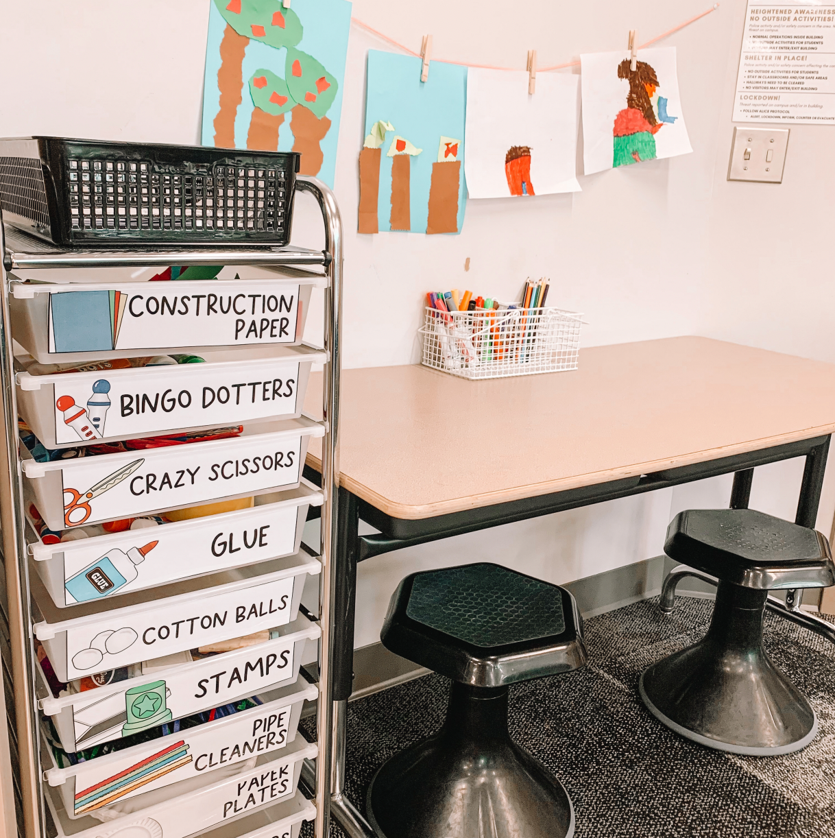 Art Supplies Rolling Cart Labels | Craft Center | Editable