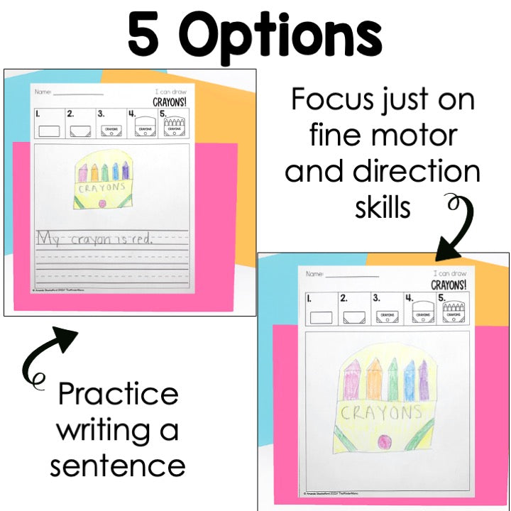- Option Two: Students draw the directed drawing AND write a sentence (blank and handwriting lines available)