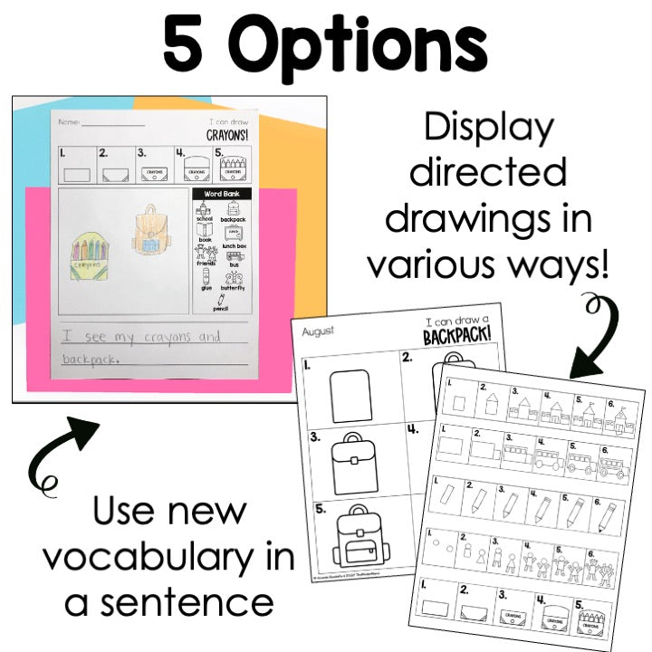 - Option Four: Print and cut directed drawings in strips. Display in a pocket chart or hang in a binder ring. Leave at a craft or writing center.
