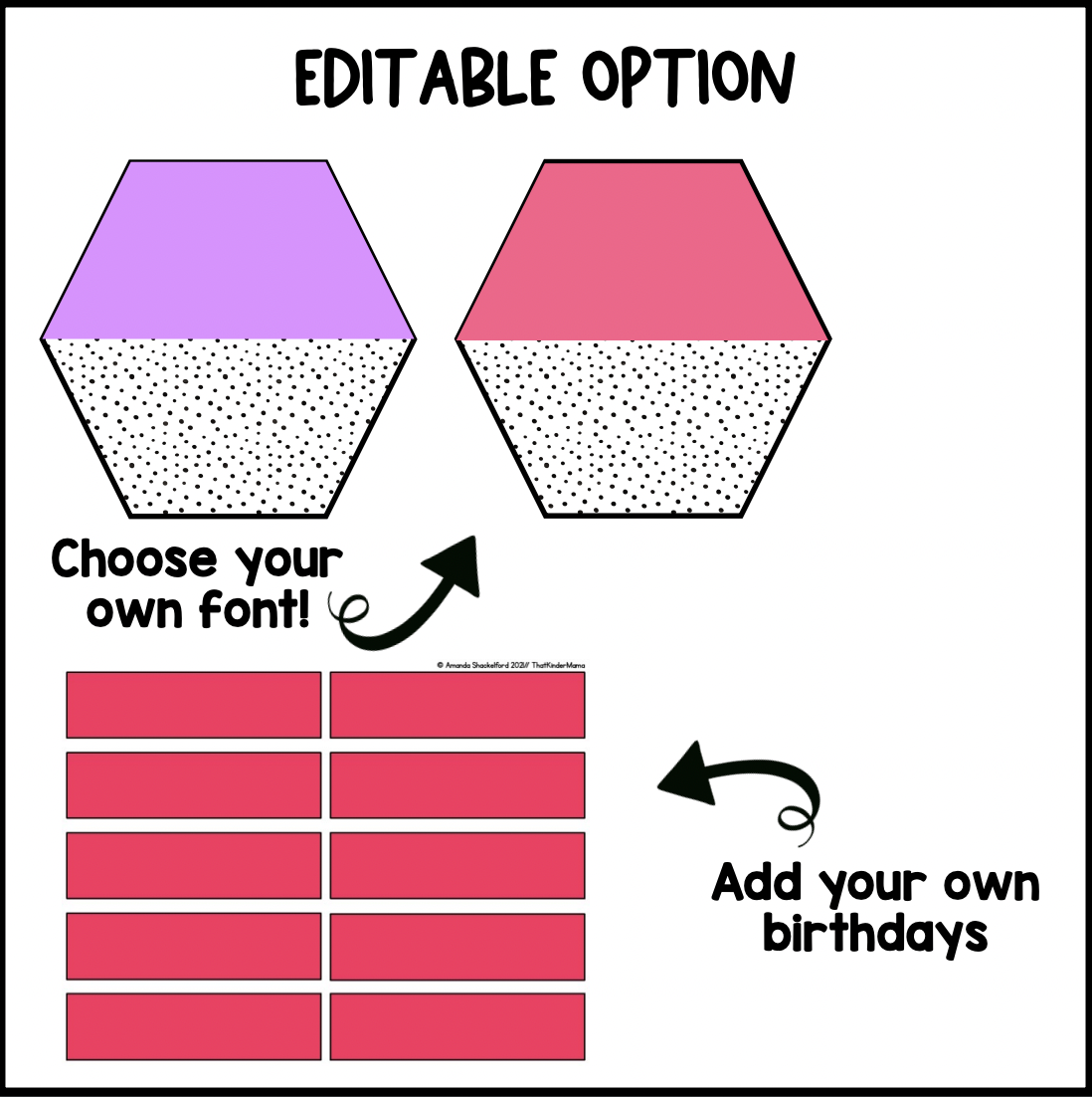 This is a Bright Rainbow Dalmatian Editable Birthday Chart display. Use these editable birthday chart to display birthdays in the classroom. The bright and spotty colors would suit any grade level classroom. Create a fun, colorful classroom with this bright and bold birthday display!