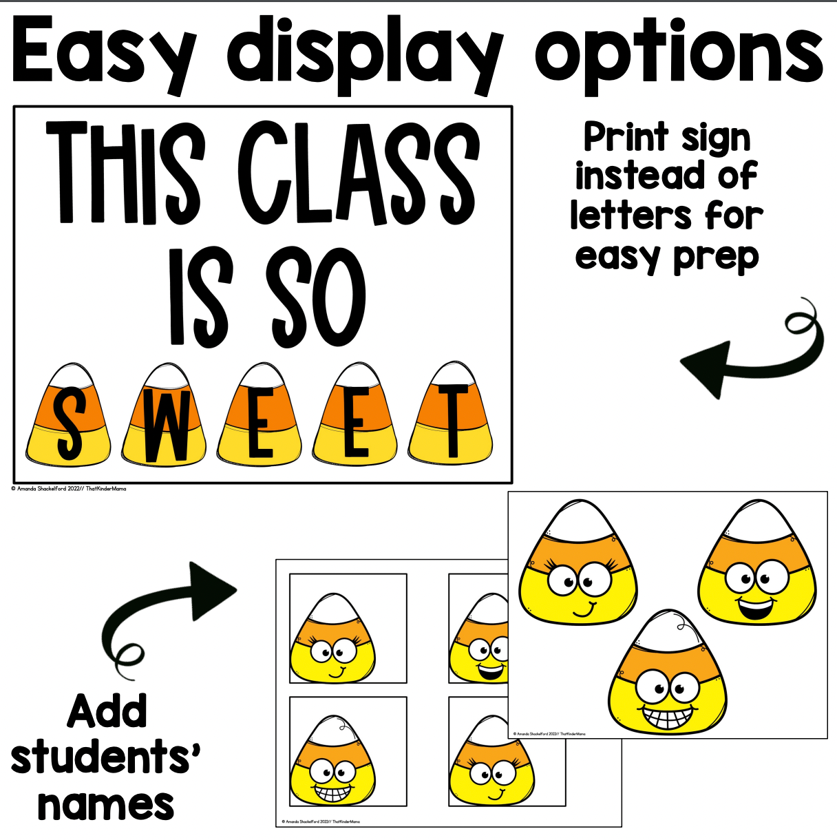 This is a Candy Corn Bulletin Board Craft for all ages. Students can create a candy corn craft to display on a Fall or Halloween bulletin board or find their name displayed on it.