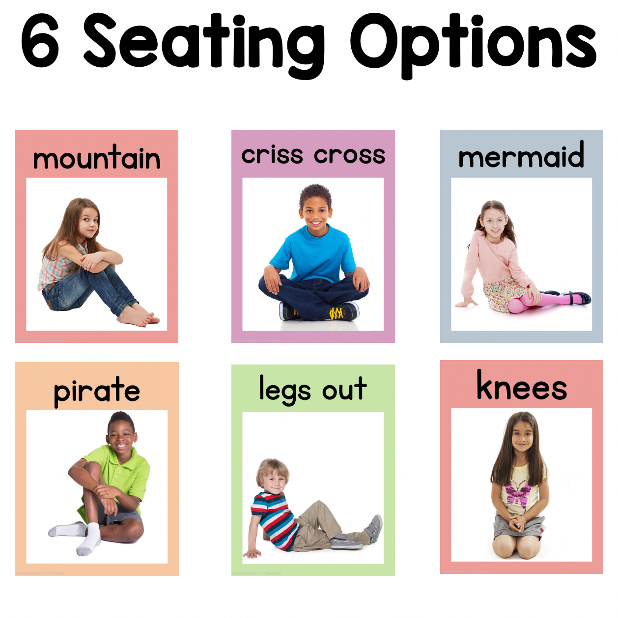 - 1 anchor chart of all the sitting options together (you can print this as a huge poster to keep by the front of your whole group learning area)