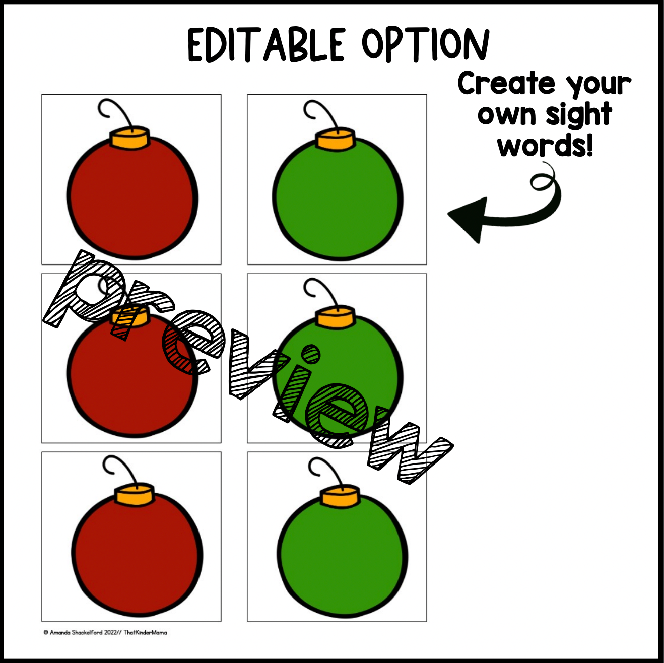 December Sensory Bin | Alphabet | Sight Word | CVC word center | Editable
