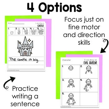 These are 40 Fantasy Fairytale Directed Drawings. Perfect for kindergarten, first or second grade students to continue gaining confidence in their drawing abilities while also practicing fine motor skills, following directions, sentence writing or building vocabulary. Add these directed drawings to your reading or craft centers to give your students hand on experiences.