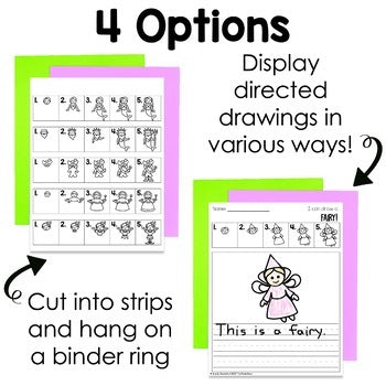 - Option Three: Print and cut directed drawings in strips. Display in a pocket chart or hang in a binder ring. Leave at a craft or writing center.