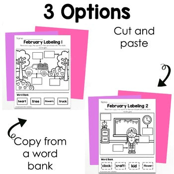 These are no prep, February labeling printables you can use with your kindergarten students to practice labeling pictures. Students can focus solely on the skill of labeling without worrying about additional steps in the writing process. It is a perfect companion to your winter or February reading centers.