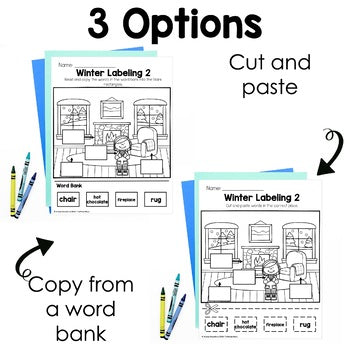 These are no prep, labeling printables you can use with your kindergarten students to practice labeling pictures. Students can focus soley on the skill of labeling without worrying about additional steps in the writing process. It is a perfect companion to your winter or January reading centers.