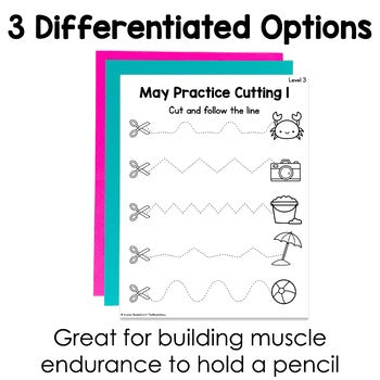 These are May End of the Year Cutting Practice Pages. Perfect for kindergarten students to have fun while practicing scissor and fine motor skills. Add these cutting pages to your morning tubs, fine motor bins or early finishers activities. Your students will enjoy this hands on learning experience!