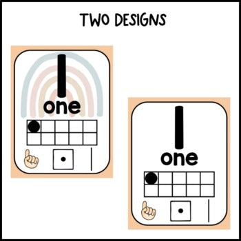 - Number posters 0-20 with ten frame, dice, tally mark and hand numbers displayed (for numbers 0-10).