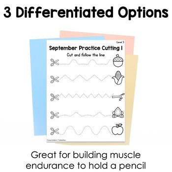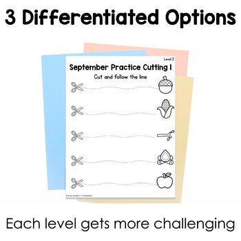 These are September Cutting Practice Pages. Perfect for kindergarten students to have fun while practicing scissor and fine motor skills. Add these cutting pages to your morning tubs, fine motor bins or early finishers activities. Your students will enjoy this hands on learning experience!