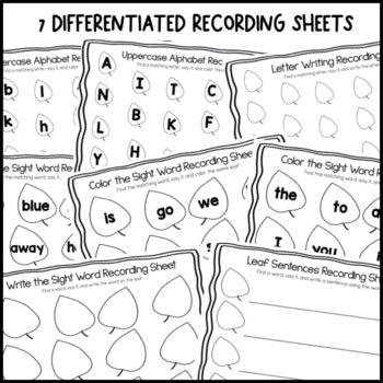 This is a differentiated September/Fall sensory bin reading center. Students can practice alphabet letters, sight words or sentence writing with this differentiated literacy activity.